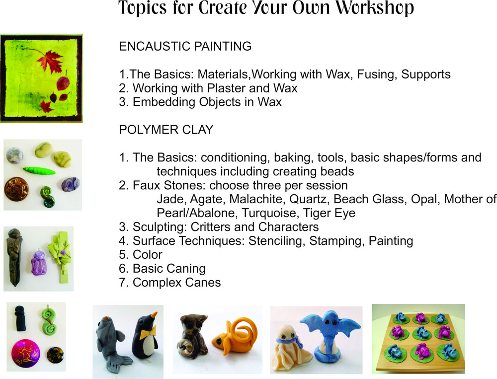 So many folks have asked if I teach workshops, that I have decided to increase my efforts to provide some quality learning in Encaustic painting and working with Polymer Clay.
